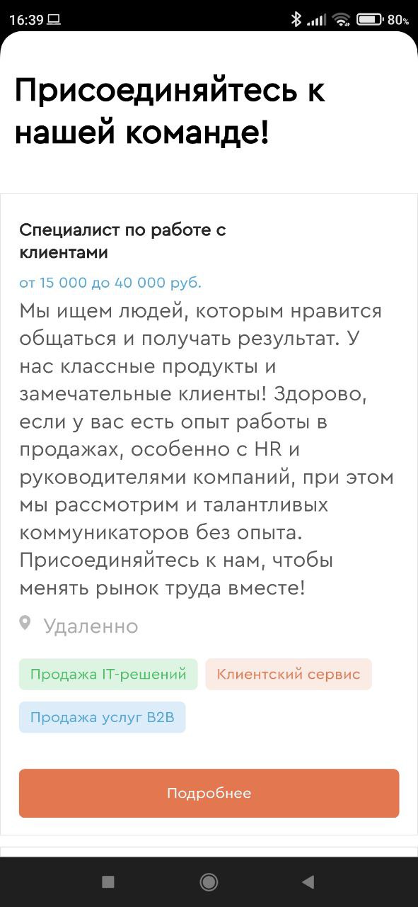 Наше решение – инструмент развития вашего собственного бренда работодателя. С ним вы ведете соискателей на ваш собственный сайт и напрямую получаете отклики самых лояльных кандидатов.
